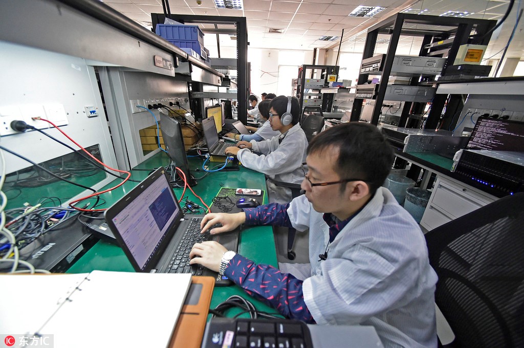 Developers work at the R&D unit of Dawning Information Industry Co, also known as Sugon, in Tianjin, March 14, 2018. [Photo/IC]